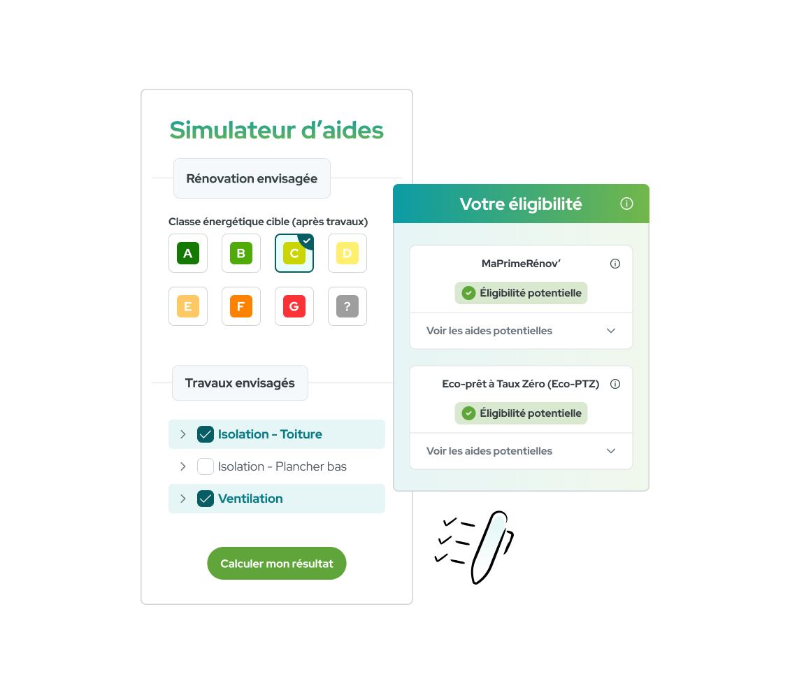 Si un financement est nécessaire (prêt à taux zéro, préfinancement des aides, avance de trésorerie…), nous vous guidons vers les solutions les plus adaptées à votre situation — en fonction de vos revenus, de vos priorités, et de votre projet.